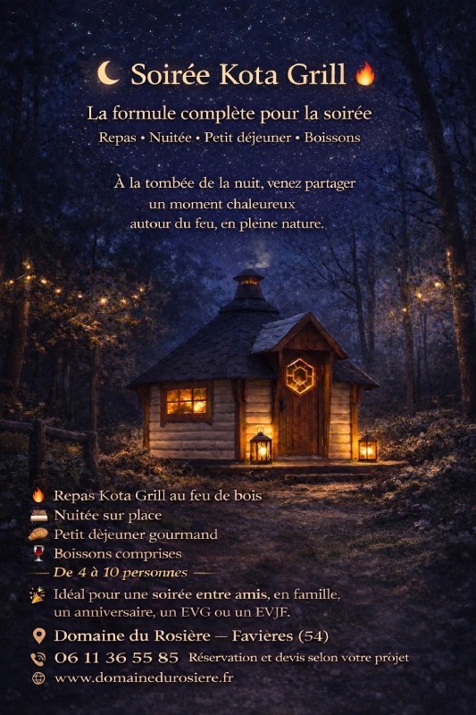 Que ce soit pour un dîner insolite ou une soirée festive, le kota grill vous garantit un moment convivial et mémorable, à l’abri des regards, dans une ambiance authentique et chaleureuse au cœur du domaine.